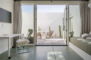1 Bedroom • 1 Bathroom 1 Bath • Sleeps 1-2Escape to Celestina, a secluded, newly-built guest house in Midtown Tucson. Inspired by Mexico City's mid-century style, this serene retreat for two features a king bed, a spa-like bathroom, and a private walled patio. Enjoy a minimalist desert aesthetic with modern comforts, just minutes from the University of Arizona and Downtown. Perfect for a tranquil getaway or a stylish work-from-anywhere base.