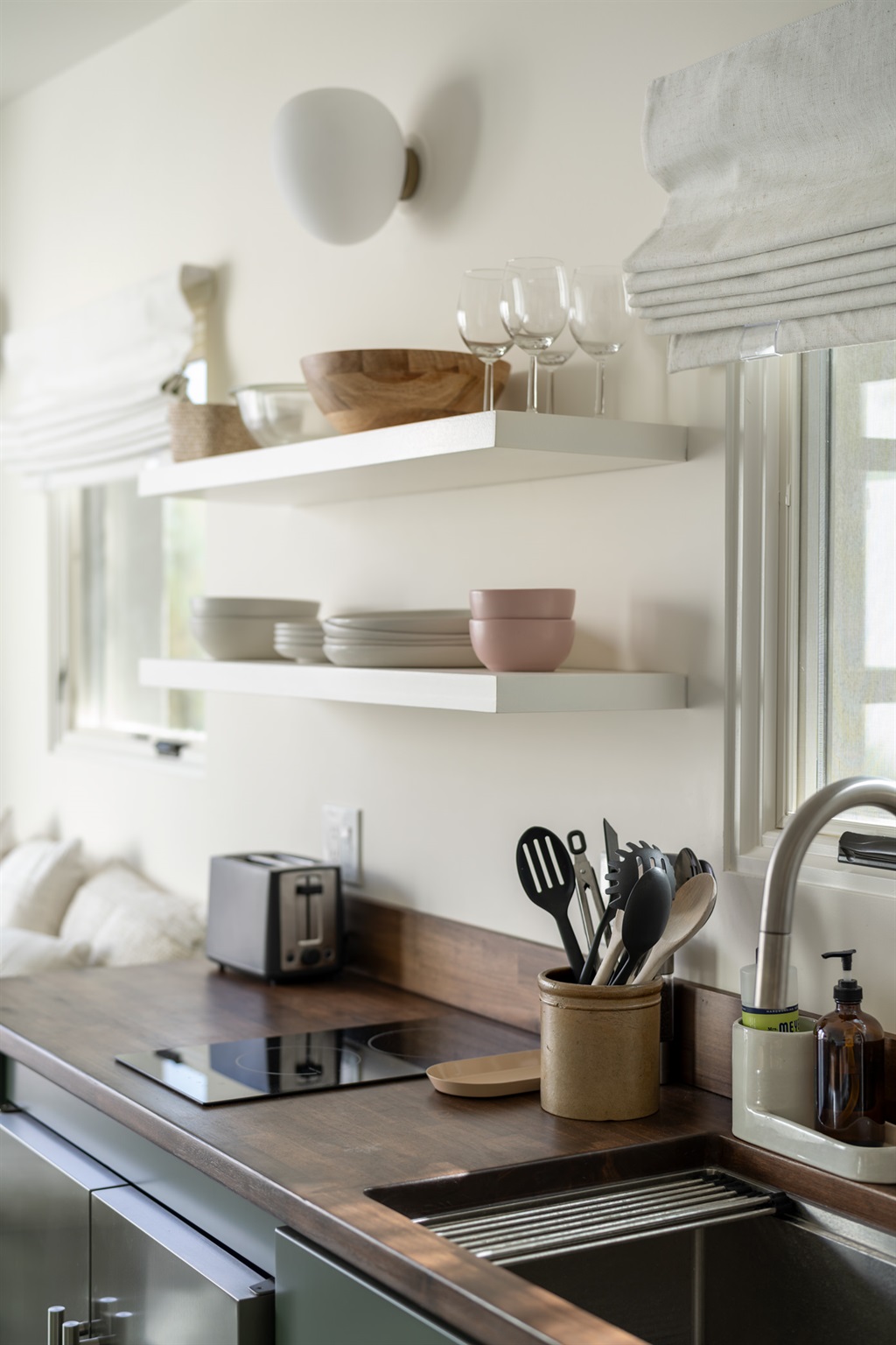 🍳 Kitchenette, 2-burner range, pots and pans, Keurig coffeemaker, microwave
