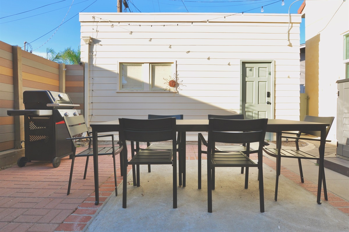 In the house, you'll have a full kitchen, dining room, living room and two comfortable bedrooms -- one king, one queen, both with Wink luxury mattresses. Additionally you'll have a spacious patio and outdoor dining table to enjoy San Diego's perfect weather, along with a gas grill (note that there is a chance you will have to get the little propane tank filled in order to use it, sometimes that happens).